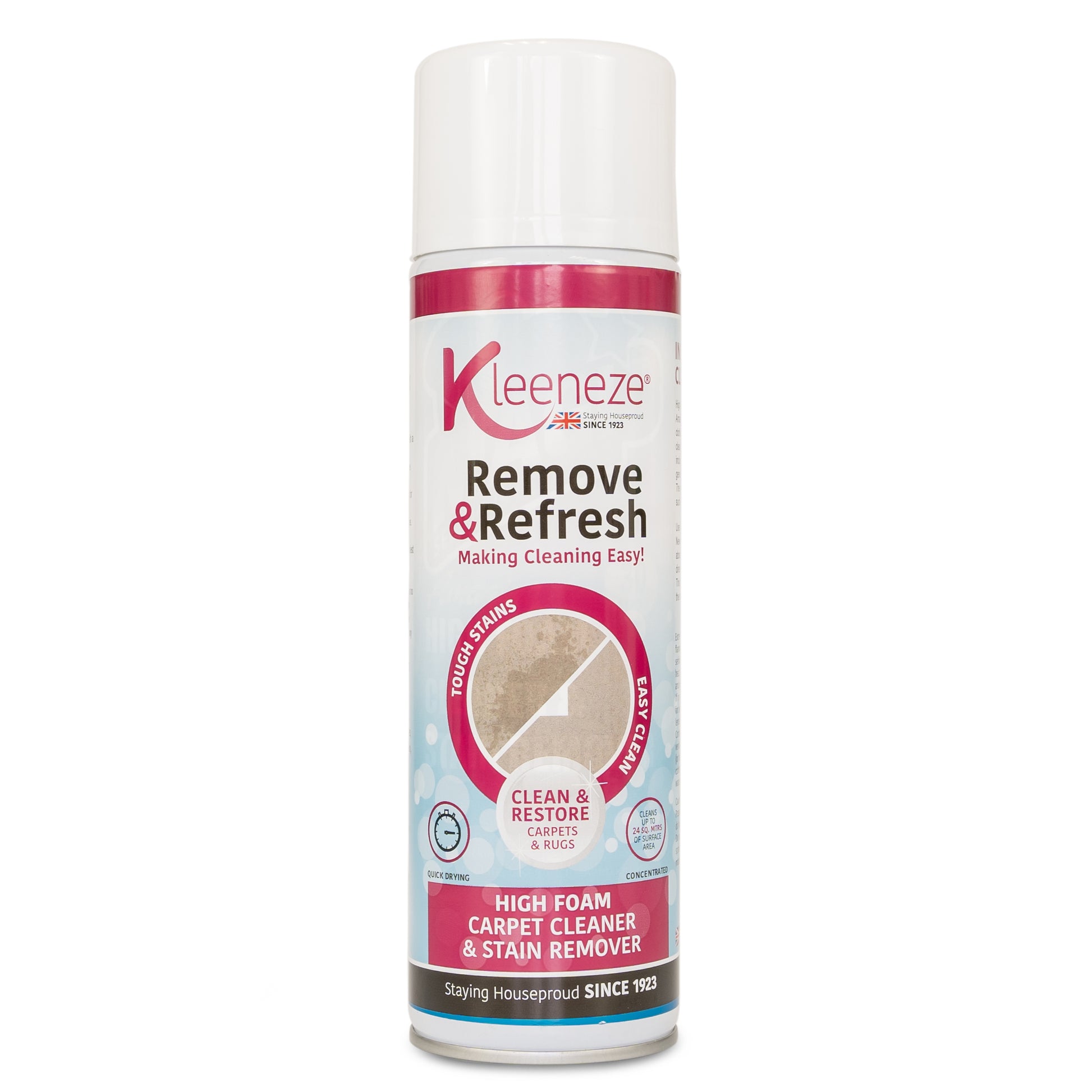 Kleeneze - Remove and Refresh - High Foam Carpet and Upholstery Stain Removing Cleaner - 500ml High Foam Aersoal Can