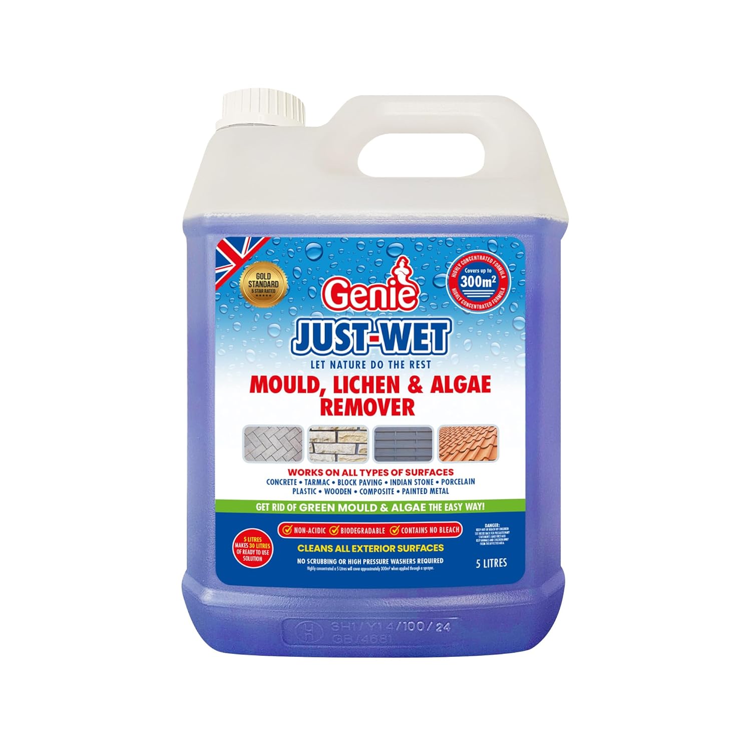 Genie Just-Wet 5 Litre Outdoor Cleaning Solution, Mould, Lichen & Algae Remover, Black Mould Remover, Bleach Free